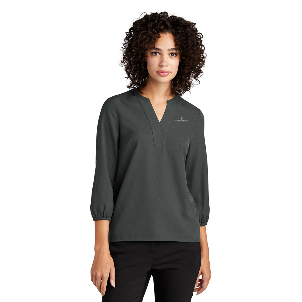 Offering a stylish look for desk-to-dinner wear, this silhouette is distinguished with a fine, free-flowing crepe fabric and a relaxed fit. The stay-put elastic cuffs mean no rolling necessary. Hem reaches low at the hips with a slight drop tail for elegant drape.